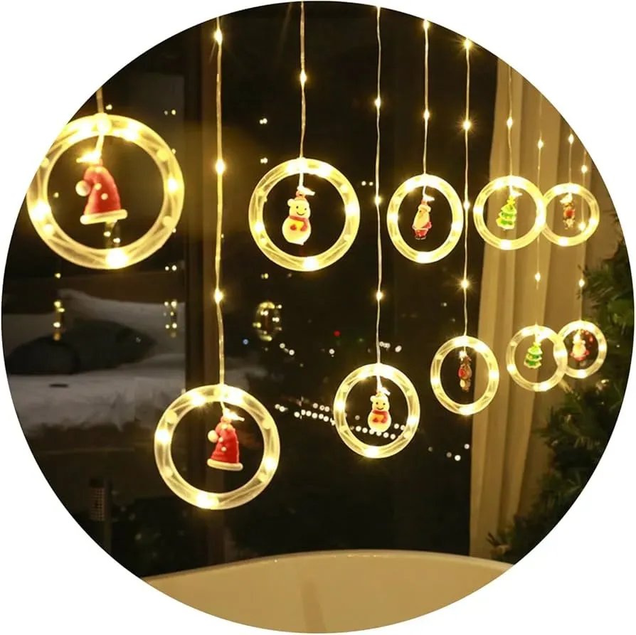 Un ramillete de luces navideñas colgando de una ventana, perfecto para decorar tu hogar durante la temporada festiva. Dale un toque acogedor y festivo a tu espacio con estas luces brillantes que crearán un ambiente mágico en tu casa.