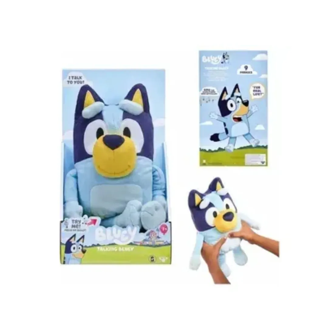 Bluey Talking Bluey es un adorable peluche que puede hablar, ideal para niños que buscan un compañero de juegos interactivo. Con su suave textura y capacidad para comunicarse, este juguete cautivará a los pequeños, brindándoles horas de diversión y entretenimiento.