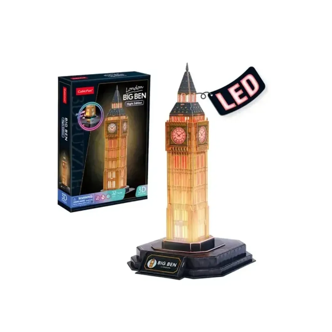 ¡Descubre la emblemática torre del Big Ben de Londres con este rompecabezas 3D! Con luces LED que le dan un toque especial, este puzzle es perfecto para desafiar tu mente y decorar tu hogar. ¡Ideal para amantes de la arquitectura y los viajes!