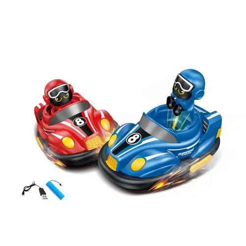 Dos autos de choque a control remoto luchan entre sí en un fondo blanco. Diviértete compitiendo con amigos y familiares con estos emocionantes autos de choque que ofrecen horas de entretenimiento. ¡Controla la dirección y la velocidad para chocar y ganar la batalla!