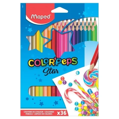 Un pack de lápices de colores Maped Color'Peps Star, ideal para dar vida a tus creaciones artísticas. Con una amplia gama de colores vibrantes y punta resistente, estos lápices son perfectos para dibujar, colorear y resaltar detalles. ¡Agrega un toque de color y diversión a tus proyectos creativos c...