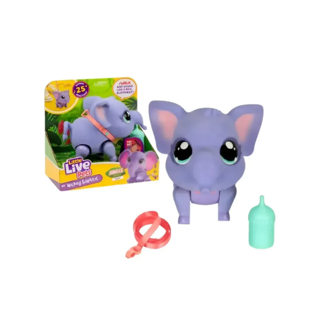 ¡Diviértete con este adorable juguete de elefante que camina! Perfecto para los amantes de la jungla, este juguete Little Live Pets brinda horas de entretenimiento. Con movimientos realistas y sonidos divertidos, ¡tu pequeño explorador disfrutará de aventuras salvajes en casa!