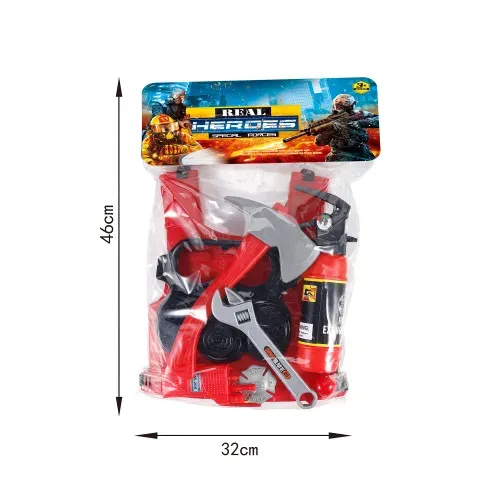 Un set de herramientas de bombero en una bolsa de plástico con medidas precisas. Este kit es esencial para cualquier bombero, ya que contiene todas las herramientas necesarias para hacer frente a situaciones de emergencia. ¡No te quedes sin este completo set de herramientas de alta calidad!
