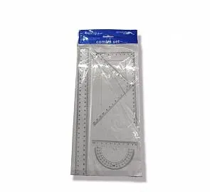 Un set de reglas y transportadores de plástico en una bolsa de plástico, ideal para estudiantes y profesionales que necesitan herramientas de medición precisas. Perfecto para usar en la escuela, en el trabajo o en casa. ¡Hazte con este práctico set hoy mismo!